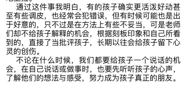 故事分享后,各位老师又进行了深一步的感悟与反思,并形成文字留存。